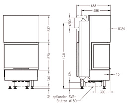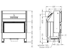 Производится из нержавеющей стали толщиной 2 мм с уже предусмотренной теплоизоляцией, а также защитными керамическими стеклами (количеств зависит от конфигурации) и стемалитовым стеклом на задней стенке. Поставляется исключительно в собранном виде для минимизации трудозатрат на его установку.