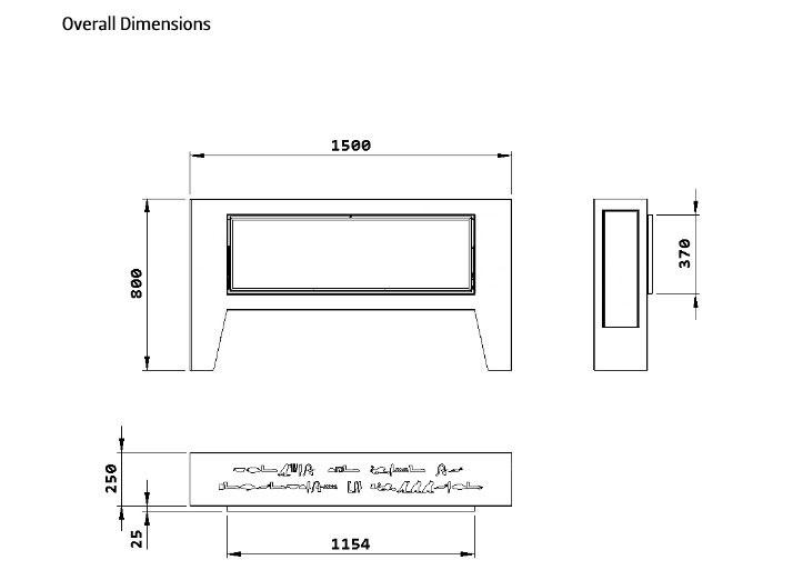- Стекло ШxГxВ, (мм): 1154x25x370