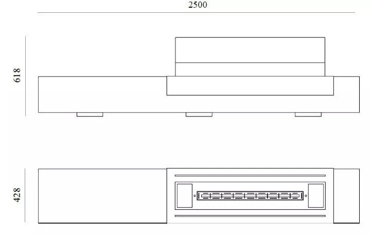 - Габаритные размеры ШxГxВ, (мм): 2500x428x618