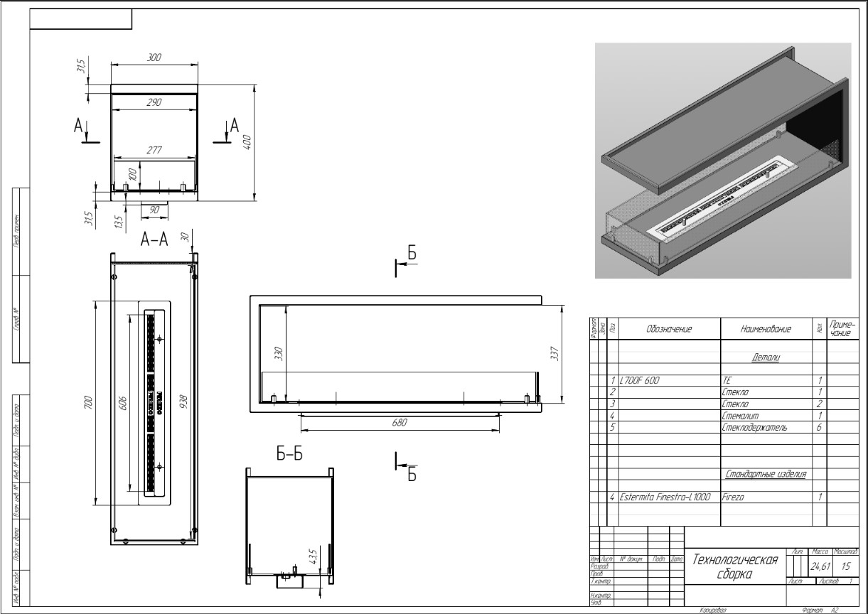 - Базовые размеры камина: 1000x300x300 мм