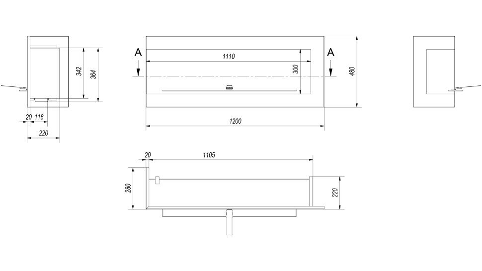 - Габаритные размеры ШxГxВ, (мм): 1200x280x480