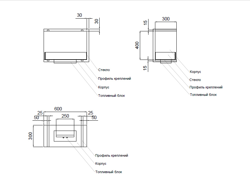 - Габаритные размеры ШxГxВ, (мм): 600x300x400