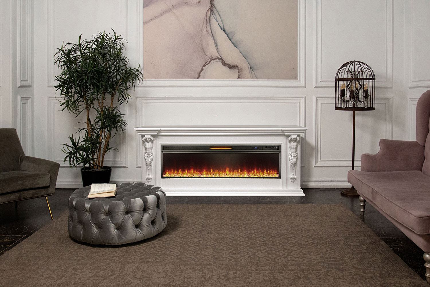 Огонь в топке исходит не от привычных дров, а от прозрачных кристаллов или цветной гальки. Это добавляет ему элегантности и утонченности. Такой декоративный элемент сделает любое помещение более современным и стильным.