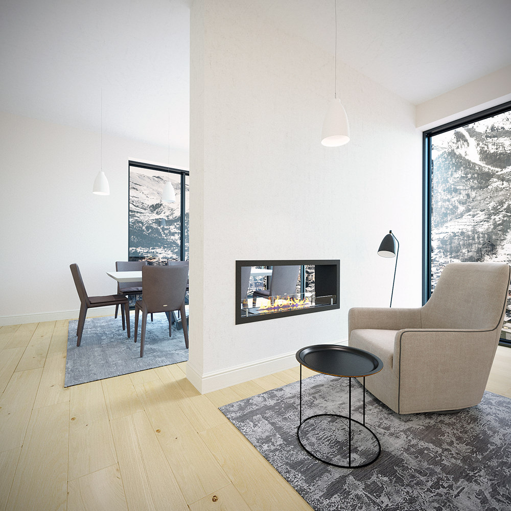 - Тип биокамина: Встраиваемый сквозной