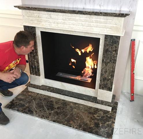 Биокамины классические в портале из Мрамора ZeFire - это обаяние современного стиля и изысканность в интерьере. Живой огонь очага в обрамлении портала из Мрамора не только создаст комфортную и уютную атмосферу в вашем доме, но и согреет в морозы. В отличие от электрических каминов, создающих иллюзию огня - в биокаминах ZeFire пламя настоящее. При этом биокамины в порталах из Мрамора не требуют установки дымохода и не выделяют продуктов горения, так как работают на экологически чистом биотопливе. Всё что нужно для установки биокамина в квартире - это заправить его биотопливом и отрегулировать силу пламени.