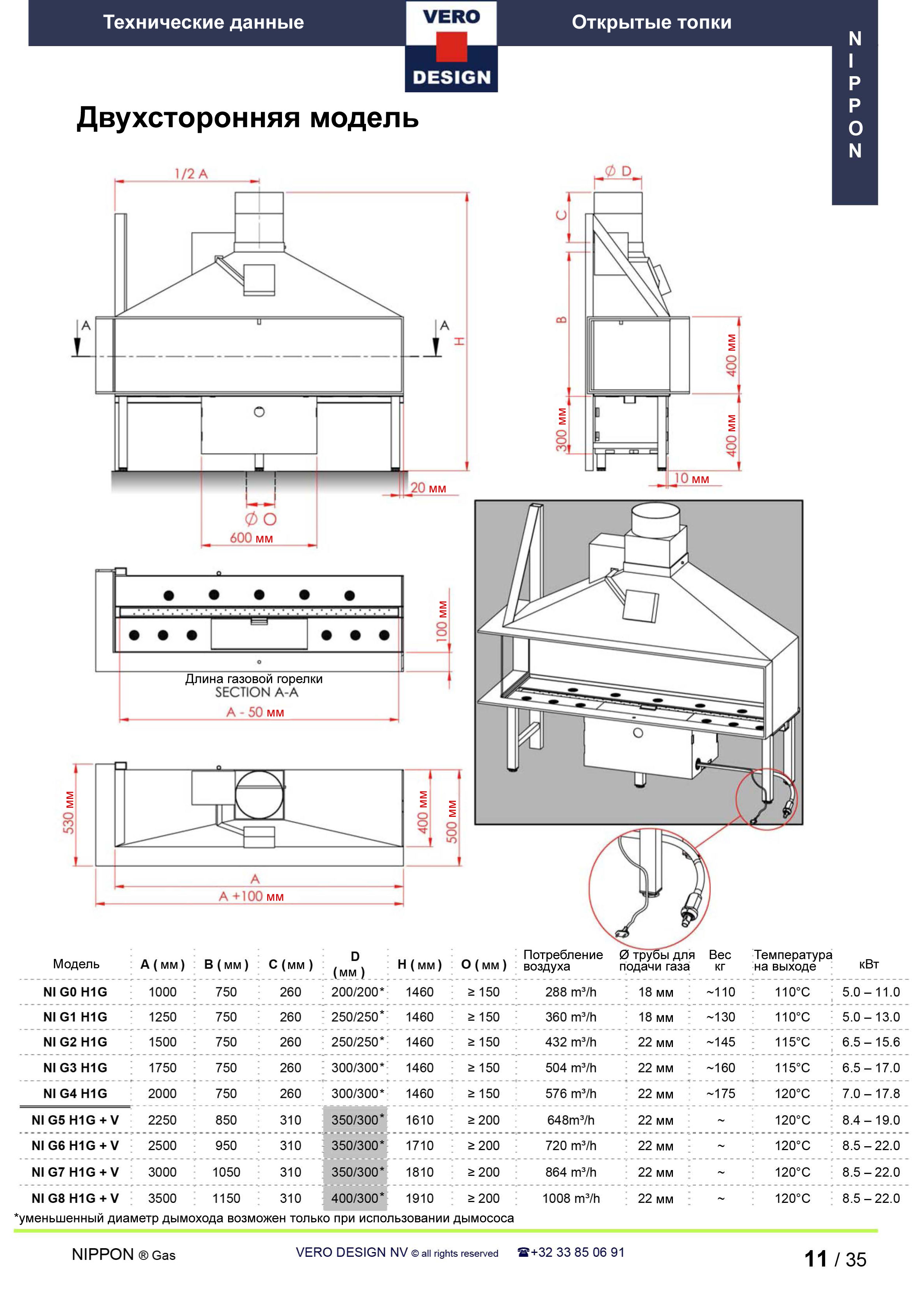 Газовый камин Vero Design Nippon NI G0 H1 G