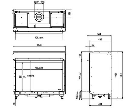 - Диаметр дымохода, (мм) 200