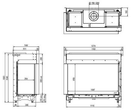 В камине реализована закрытая технология горения пламени. Характеризуется она полной герметичностью топочной камеры, за счет чего воздух в помещении не используется для поддержания пламени в очаге. Воздух же, насыщенный кислородом подается по дымоходу, подключаемому к камину. Он имеет двухконтурную конструкцию, и именно по внешнему контуру открывается доступ для свежего воздуха. По внутреннему контуру отводятся отработанные газы.