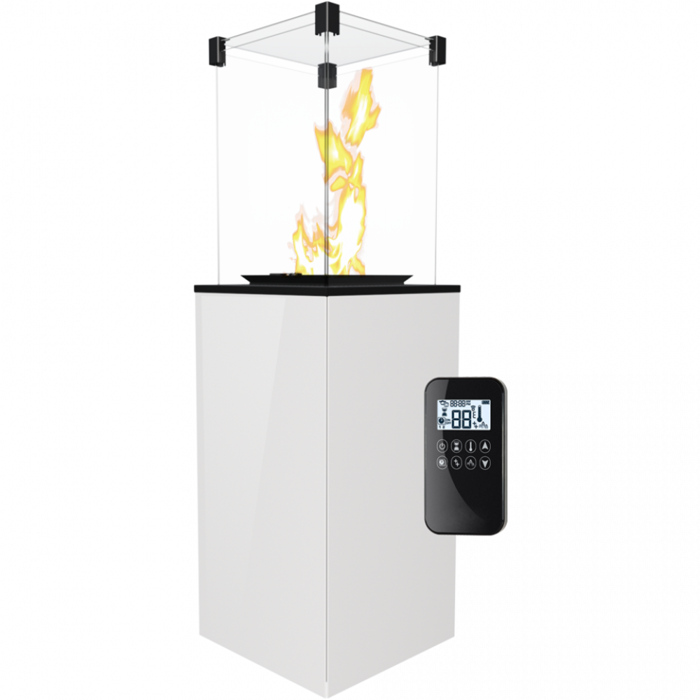 - Заполняется жидкостным газом из баллона, который скрыт в корпусе. Пламя закрывается в стеклянной камере, которая защищает нас от прямого контакта с огнем. Это позволяет наслаждаться игрой пламени, которое находится под полным контролем. Нижняя часть корпуса устройства изготовлена из стали, которая с трёх сторон закрывается стеклянными панелями белого цвета. Благодаря этому выдерживает повреждения. В устройстве использовано закалённое стекло толщиной 4 мм.