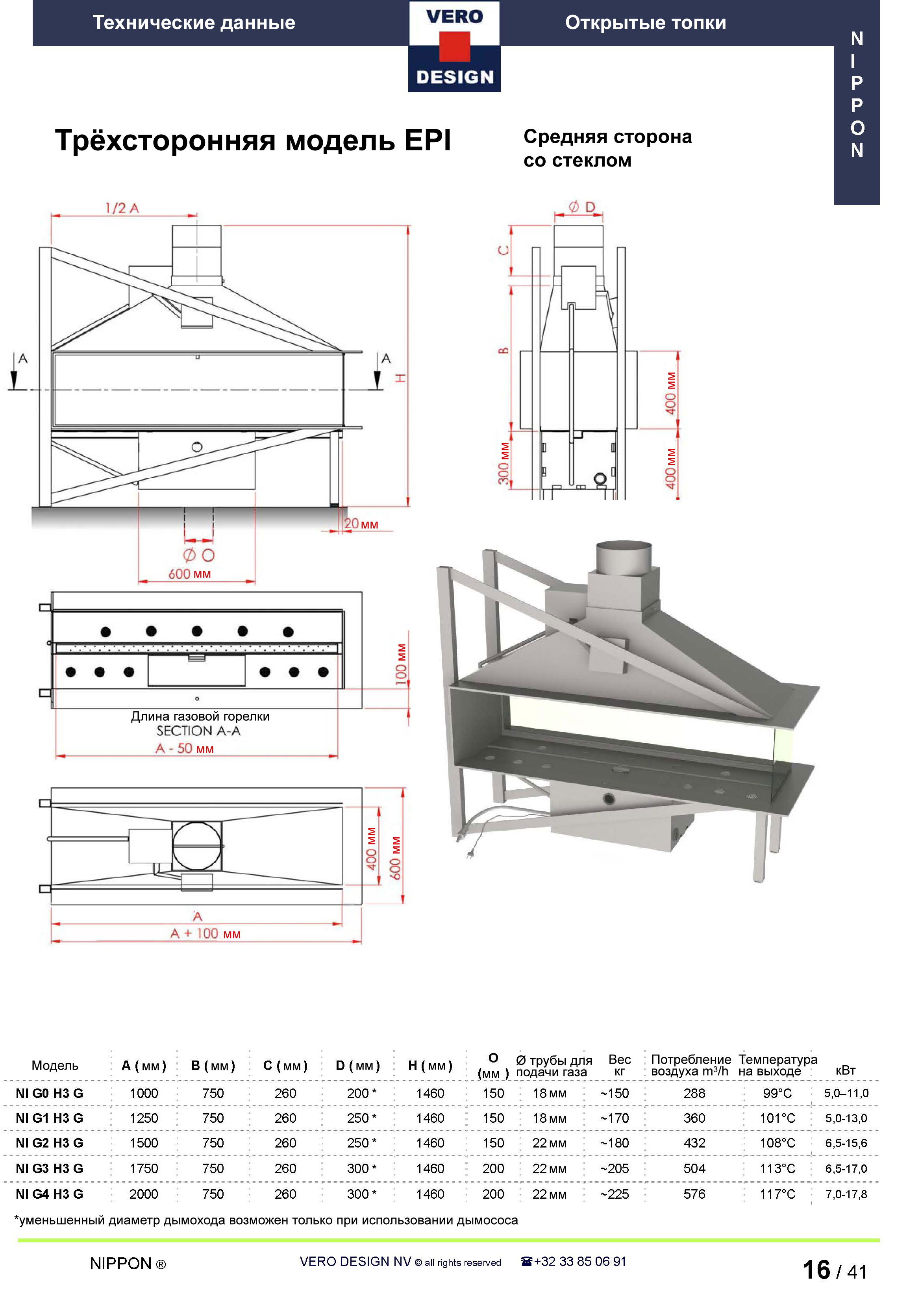 Газовый камин Vero Design Nippon NI G4 H3