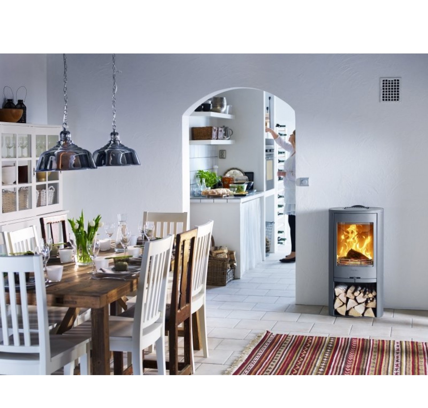 Оснащен поворотной колосниковой решеткой и выдвижным зольником. Отделка: боковые панели - металл; верхняя панель- чугун, сталь или талькомагнезит.
