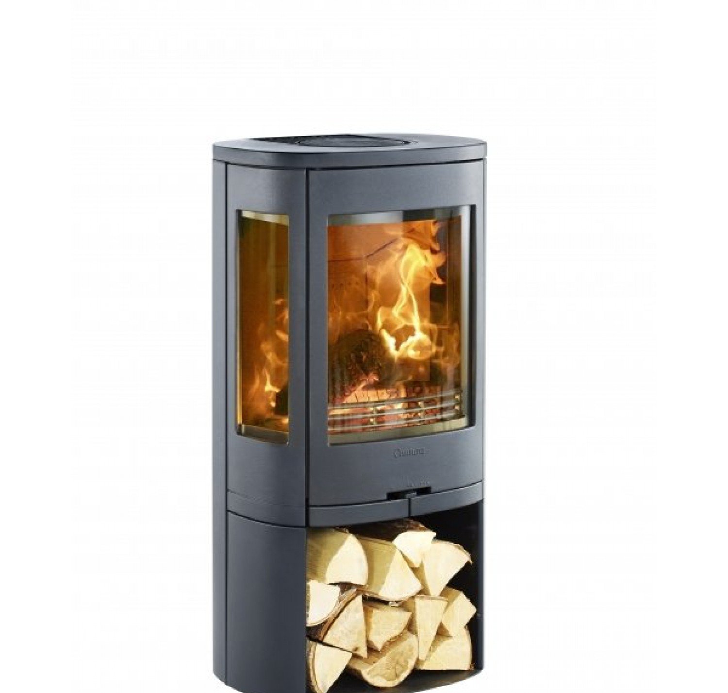 Печь-камин Contura 850 с широкими боковыми стеклами. Оснащен поворотной колосниковой решеткой, выдвижным зольником. Отделка: боковые панели - металл.