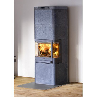 Печь-камин Contura 26T в облицовке из талькомагнезита. Оснащен чугунной решеткой, выдвижным зольником и широким фронтальным стеклом. Камин может быть оснащен вентилятором и теплонакопительным блоком: это позволит отапливать помещение в течение восемнадцати часов после угасания огня. Поток горячего воздуха регулируется с помощью шиберной заслонки, размещенной в верхней части камина.