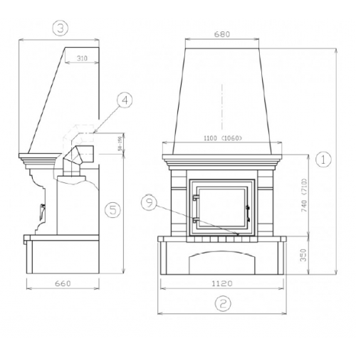 - Присоединение дымохода: - заднее