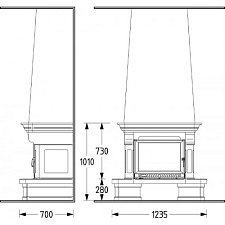 Облицовка изготовлена из полированного мрамора. Балка из массива дуба. Подходит для топок с панорамным и призматическим стеклом.