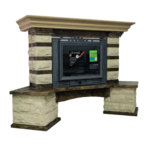 Традиционные элементы камина Bella Italia Nina, выполненные из желтого песчаника, гармонично комбинируются с элементами из полированного мрамора Rainforest Brown. Элегантная облицовка производит благоприятное впечатление благодаря контрастности использованных в ней материалов. Балка из древесины дуба дополняет общий облик, подчеркивая элегантность камина. Стильная облицовка представлена в угловом и пристенном вариантах, что значительно расширяет ее сферу применения.