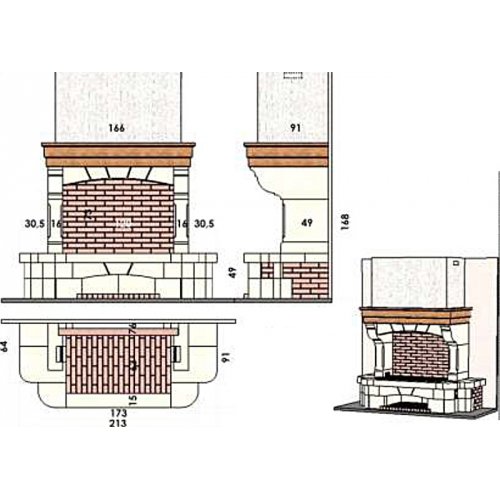• Материал камина на фото: камень золотистый бургундский, кирпич ручной работы 5 песочного цвета