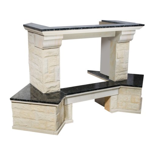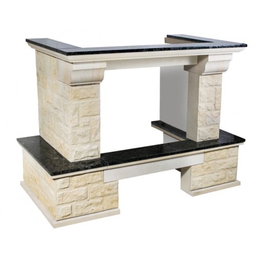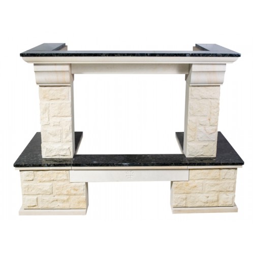 - Материал: колотый песчаник, золотистый цвет, полки и балка - LabradoriteПодходящие топки шириной „700 мм” с прямым стеклом