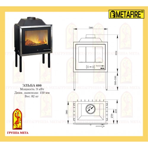 Каминная стальная топка Мета Metafire Эльба 600