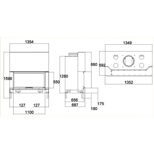 • Поперечное сечение отверстия выхода дыма - диаметр 300