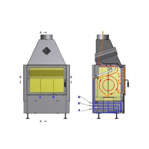 • Трехуровневая подача воздуха в топку извне — система Jet Stream - воздух поступает в топку через зольник и на стекло дверцы, образуя воздушный занавес и в дымоход топки для обогащения кислородом зоны, в которой проходит процесс догорания отходящих топочных газов.
