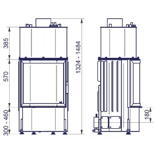 Призматическое стекло, боковое открытие, рамка дверцы хромированная. Каминная топка с водяным контуром.