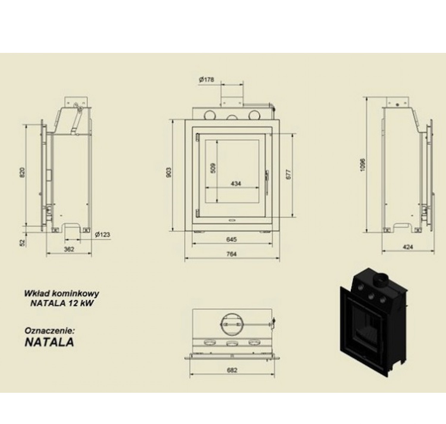 Каминная топка Natala прямое стекло