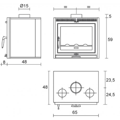- Проем: Дверца из эмалированной стали с жаропрочным стеклом, выдерживающим температуру до 750°, с самообдувом. Дверца на петлях.
