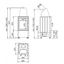 Топка имеет прямое стекло. Подъемная дверца с жаропрочным стеклом, что позволяет наслаждаться открытым огнем, которая открывается на петлях для чистки. Стальной кожух и внутреннее основание из чугуна обеспечивают прочность и долговечность. Имеет современный дизайн.