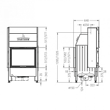 - Проем: Дверца из эмалированной стали с жаропрочным стеклом, выдерживающим температуру до 750°, с самообдувом. Дверца на петлях.
