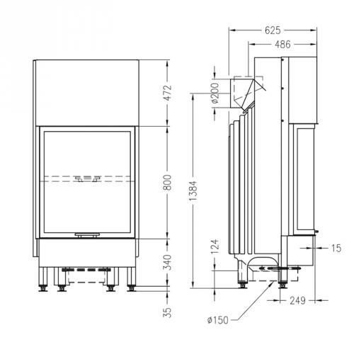 • Диаметр дымохода, мм: - 200
