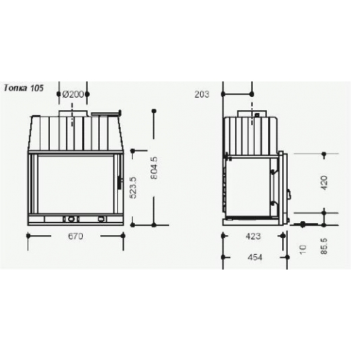 - Размер полена: 50 см (горизонтальная загрузка)- Вертикальный подъем дверцы (Altima 106) и боковое открывание (Altima 105)