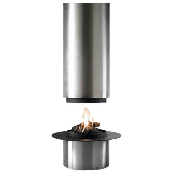 Центральный камин цилиндрической формы, с двойным корпусом. Выполнен из нержавеющей стали.