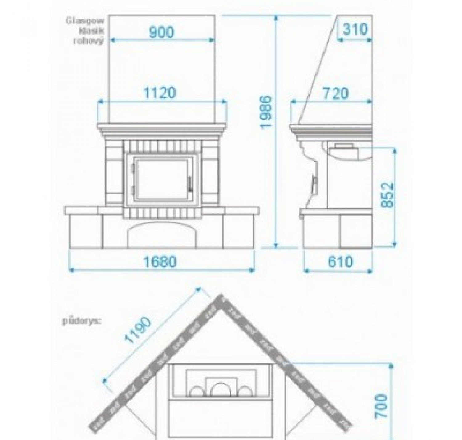 Камин ABX Glasgow Klasik (угловой) с облицовкой из песчаника оборудован закрытой топкой. Желающие посидеть «у костра», могут эксплуатировать камин с открытой топкой — открыв дверцу.