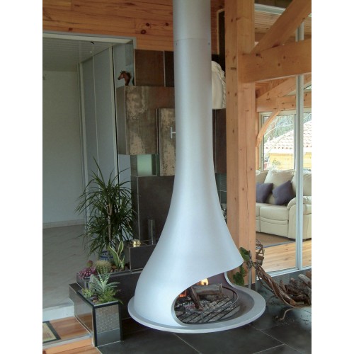 Tatiana 997 Centrale - подвесной камин. Покрыт огнеупорной светло-серой краской.