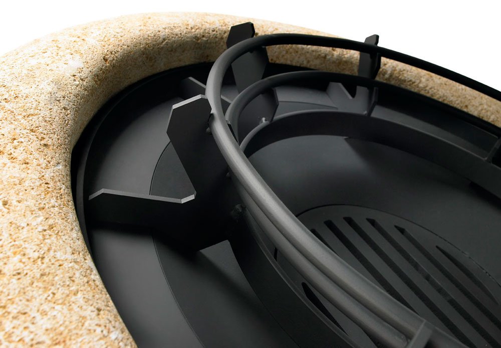 Один из самых классических образцов центральных каминов TRAFORART, который совмещает в себе металл и природный камень. Составное стекло из 4-х частей. Цвет - черный.