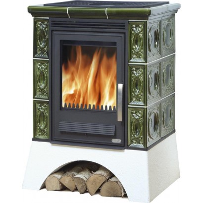 Кафельная печь Helvetia KP белый цоколь, вставка комбо зеленая