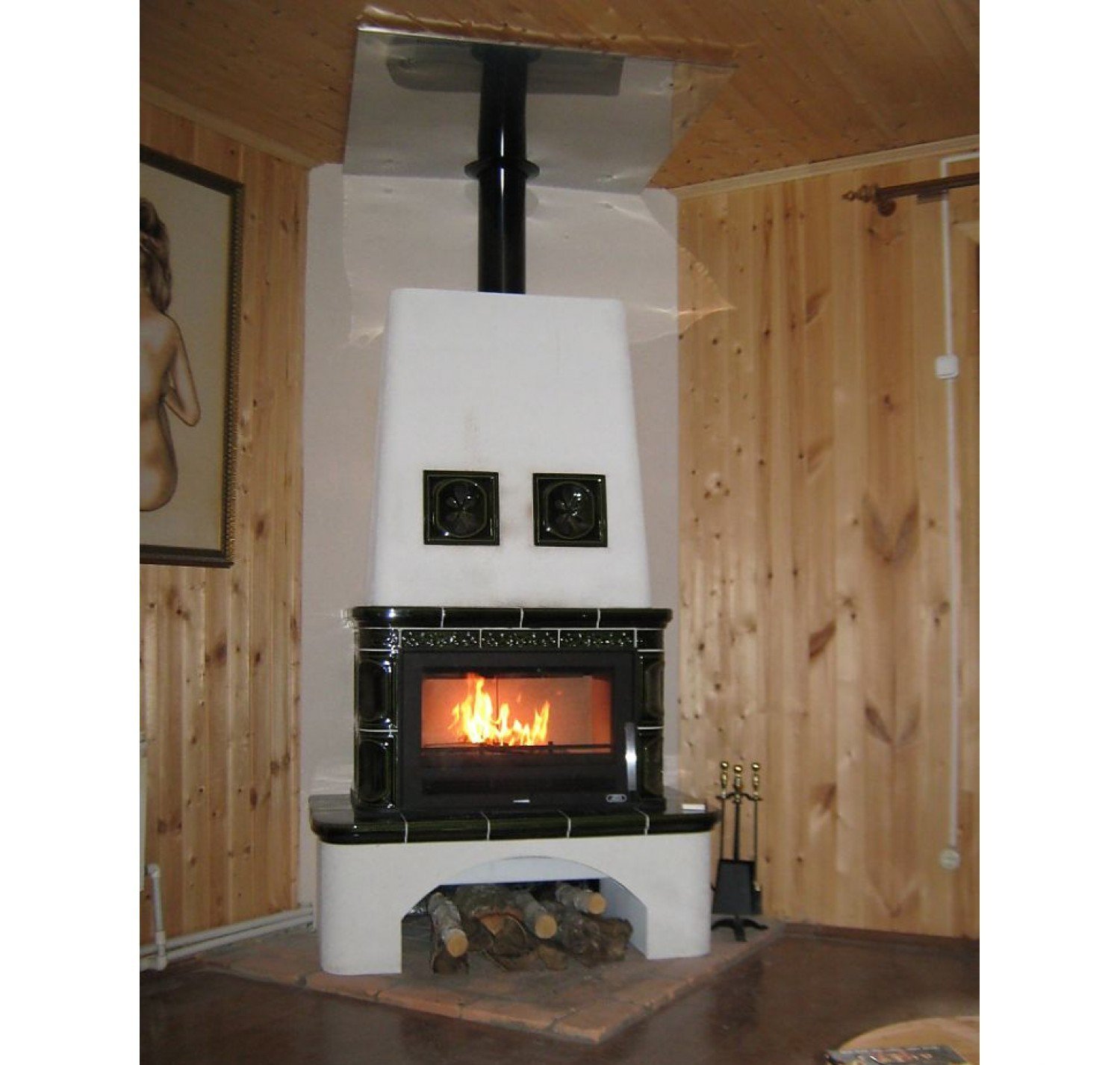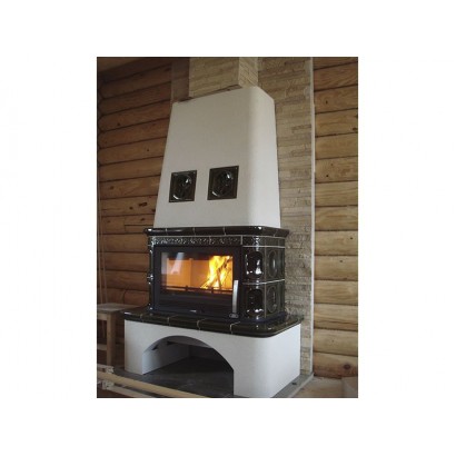 Кафельная печь-камин Laponie соединил в себе два стиля оригинальность и кантри, кафельная облицовка придает