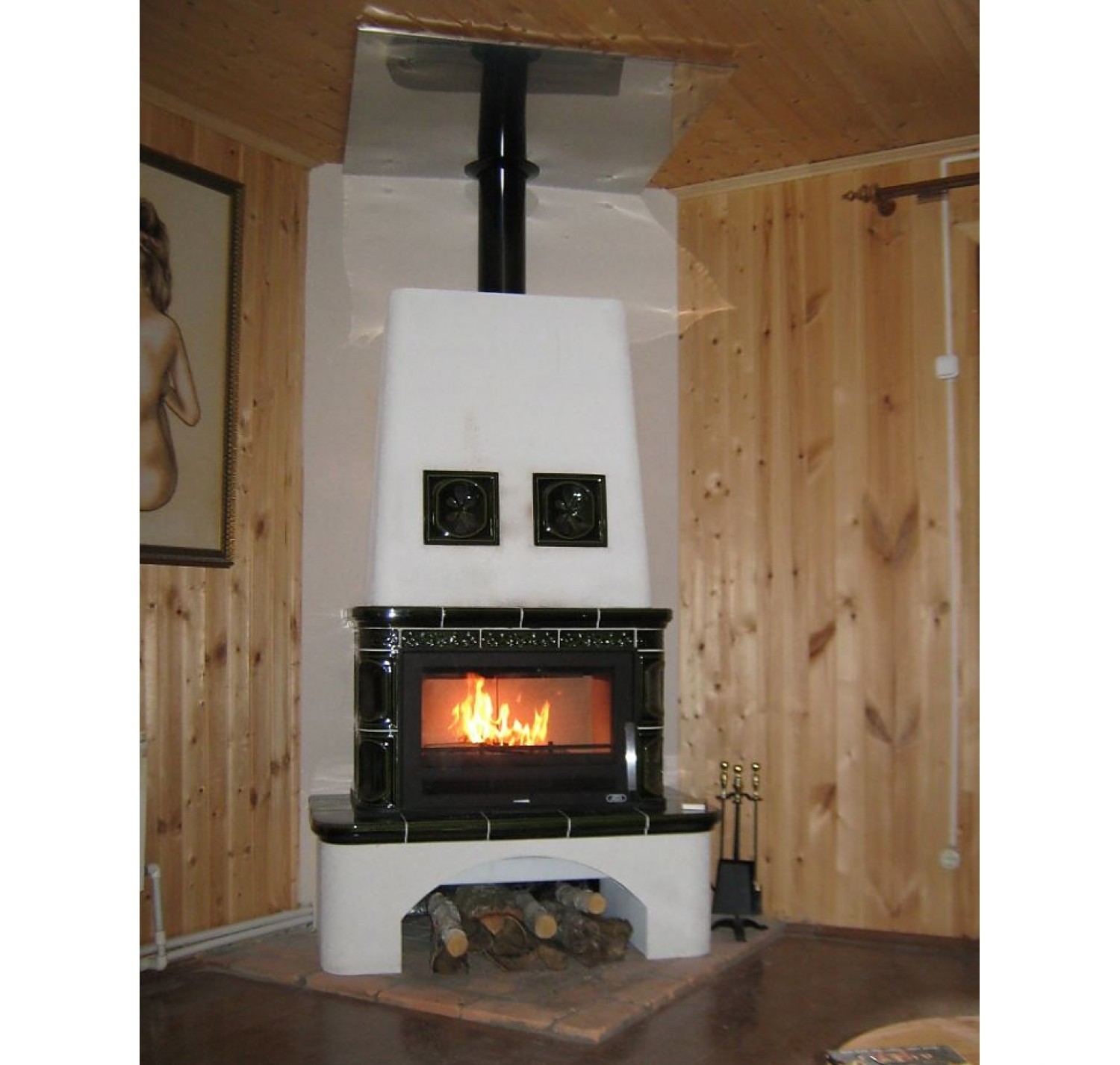 Кафельная печь- камин Laponie соединил в себе два стиля оригинальность и кантри, кафельная облицовка придает