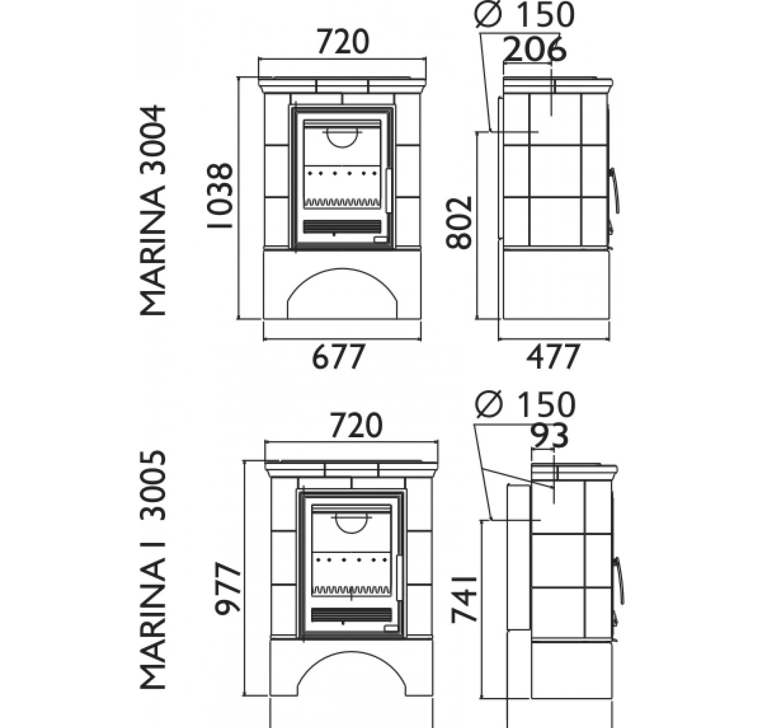 Отопительная кафельная печь ABX Marina ориентирована на обогрев помещения и украшение интерьера. При сравнительно небольших габаритах печь Marina обладает системой длительного горения и способна обогреть большие пространства при сжигании небольшого количества топлива. За час печь в номинальном режиме расходует 1,9 кг сухих дров. Облицовка выполнена из печного кафеля, который отдает тепло еще несколько часов, после того как печь протопилась. Топка кафельной печи Marina бывает чугунная или комбинированная (сталь+чугун). Выход дымохода в двух вариантах.