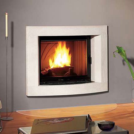 Полувстроенный камин из белого Edelroc® + пластина из мрамора Bl.Marquina.