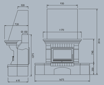 Схема углового камина Oxford Klasik, размещенная в пункте меню «Чертеж», дает наглядное представление о конструкции и габаритных размерах этого представителя чешских дровяных (деревянных) каминов, где в качестве каминного топлива используются сухие поленья дров. Камин Oxford Klasik относится к высокоэффективным отопительным приборам, развивающим мощность до 15 кВт для обогрева больших жилых зон (280 куб. м). Высокий КПД обеспечивается встроенной технологией двойного дожига, а прозрачность окна топочной камеры - системой «чистое стекло». Для улучшения эксплуатационных качеств и быстрого включения очага внутренняя часть стальной топки футерована вермикулитом – материалом с низкой теплопроводностью, позволяющим поддерживать высокий температурный режим в камере сгорания. Угловой камин имеет не только хорошие технические характеристики, но и оригинальный дизайн, способный украсить любое помещение.
