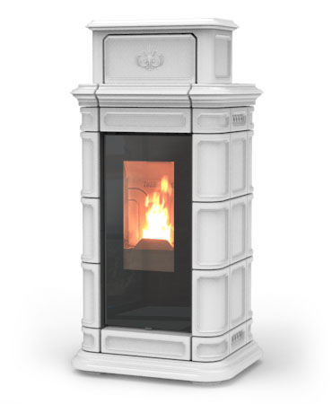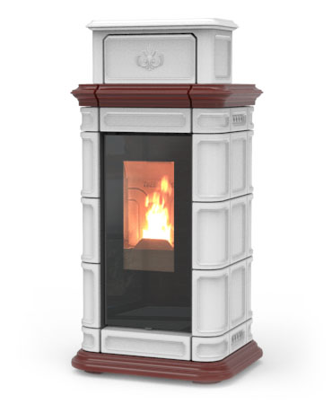- Дизайнерская отъезжающая стеклянная крышка пеллетного бункера c элементами из керамики ручной работы (майолика)