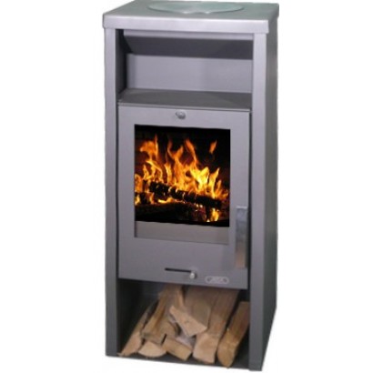 Кроме того, печь укомплектована конфоркой для приготовления пищи. Таким образом, стальная печь Falun объединяет в себе варочные и отопительные функции. Топочная камера приподнята, организуя небольшое прямоугольное пространство для хранения дров. В надтопочной зоне расположена ниша для подогрева пищи и приготовления чая и кофе.