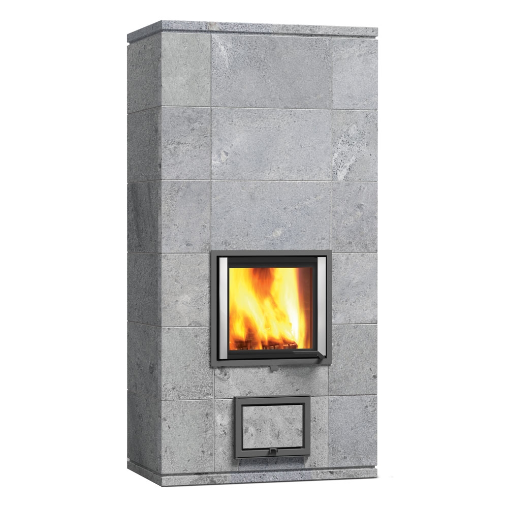 Пристенный печь-камин с задним нижним подключением 2 теплового класса, для больших помещений.
