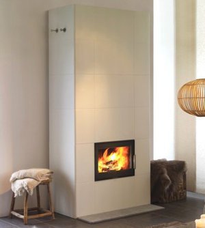 Топка модели изготовлена из термоупорной стали, а облицовка - из специального материала с уникальными теплонакопительными характеристиками. Принуцип действия камина - двойной дожиг топлива, при котором для полного сгорания древесины используется дополнительная порция горячего вторичного воздуха. Это позволяет повысить тепловую эффективность модели до 90%.
