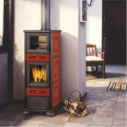 Отопительная печь Dafne (EdilKamin) с духовкой. Корпус отопительной печи - сталь, внутри - чугун, вставки из керамики, духовка, съемные кольца конфорки.