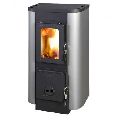 Черная с серым отопительная печь MERANO отличается передовым дизайном и передовыми технологическими характеристиками. Но сделаем сначала акцент на дизайн. Печка выполнена в ультрасовременном стиле, принадлежность к которому особенно заметна по закругленным краям и граням печки. Также очень выгодно смотрится цветовое сочетание серого и черного оттенков. Акценты четко расставлены - черная строгая топка «заключена в объятия» облицовки серого цвета. Стальной цвет и гладкая поверхность облицовки, на которой играют световые блики, придают отопительной печи MERANO дополнительный шарм. Печь имеет вместительную топку с небольшой дверцей и термоустойчивым стеклом. Под топкой расположен крайне удобный зольник, что позволит Вам без труда и лишних усилий поддерживать домашний очаг в надлежащей чистоте и порядке.