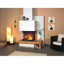 - Подходящие топки: с прямым стеклом с подъемом или боковым открыванием дверцы, открытая топка, электроочаг. В комплект входят плиты для адаптации под топку.