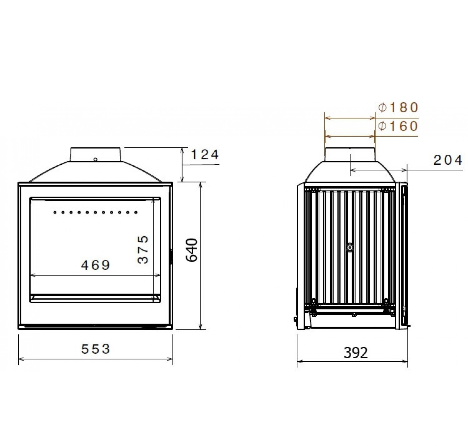 Каминная топка с дымосборником. Стекло слева.